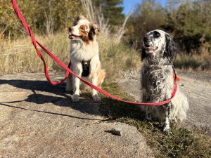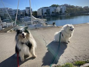 Vi blir verkligen väl omhändertagna av vädret och den sköna höstsolen! Promenaderna går till lite olika ställen. Idag gick våra olika grupper till både skogen och ner till vattnet. Hundarna är helt trygga med att röra sig i olika typer av miljöer, de är sådana stjärnor!