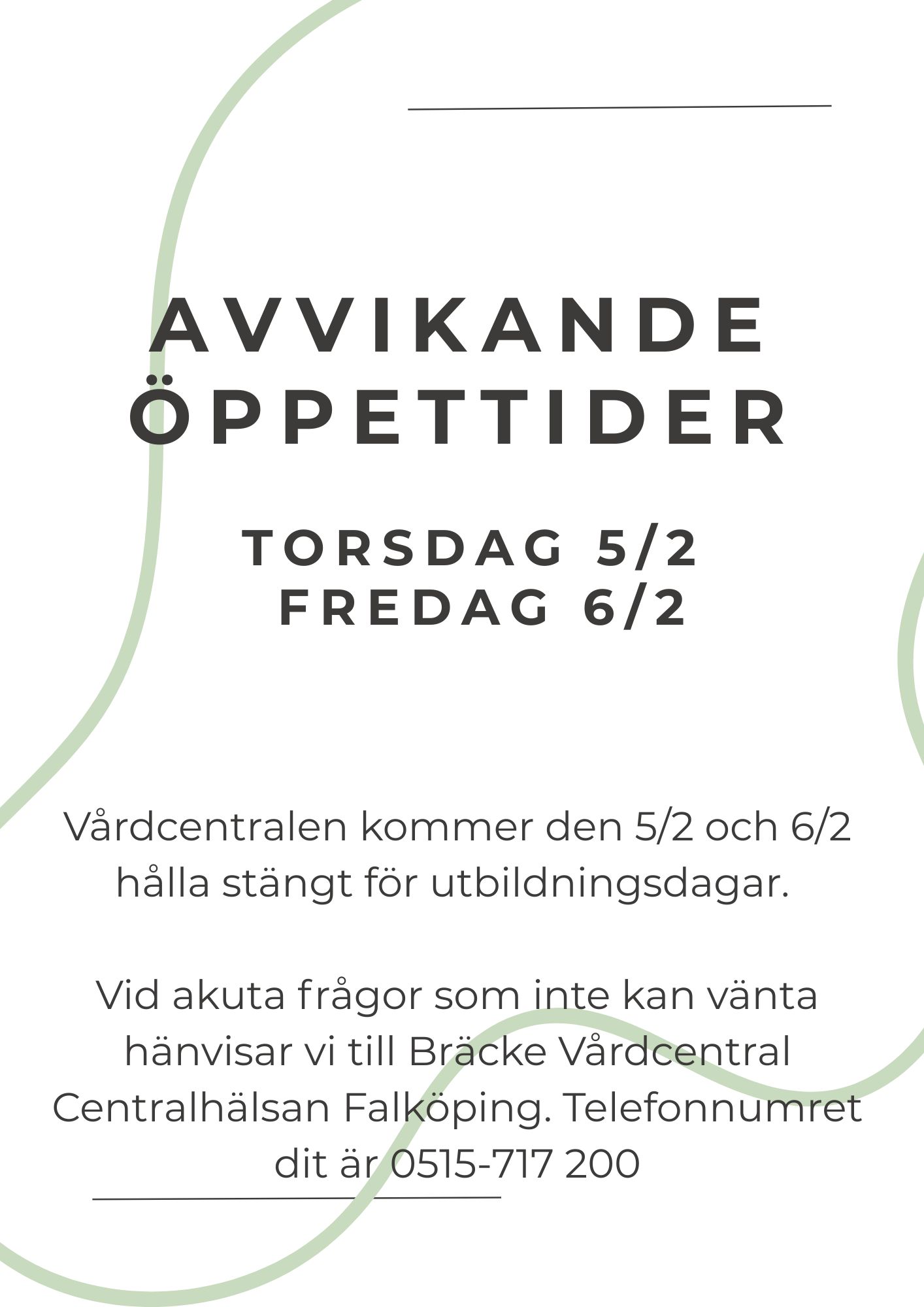 Avvikande öppettider 5/2 och 6/2.